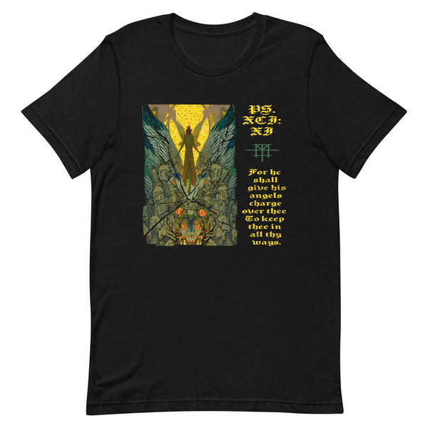 Introducing our Psalm Ninety One Eleven T-shirt, a powerful reminder of God's unwavering protection and guidance. Inspired by the timeless words of Psalm 91:11, this design encapsulates the divine promise of His angels watching over us, guarding our every step. Crafted with utmost care, this premium cotton tee features a striking graphic showcasing angel wings, symbolizing the heavenly presence that surrounds us. With its comfortable fit and durable fabric, this T-shirt serves as a tangible expression of faith, allowing you to carry the profound message of God's love and protection wherever you go. Embrace the strength and reassurance found in Psalm Ninety One Eleven, and let this T-shirt be a testament to your unyielding faith in His divine providence.